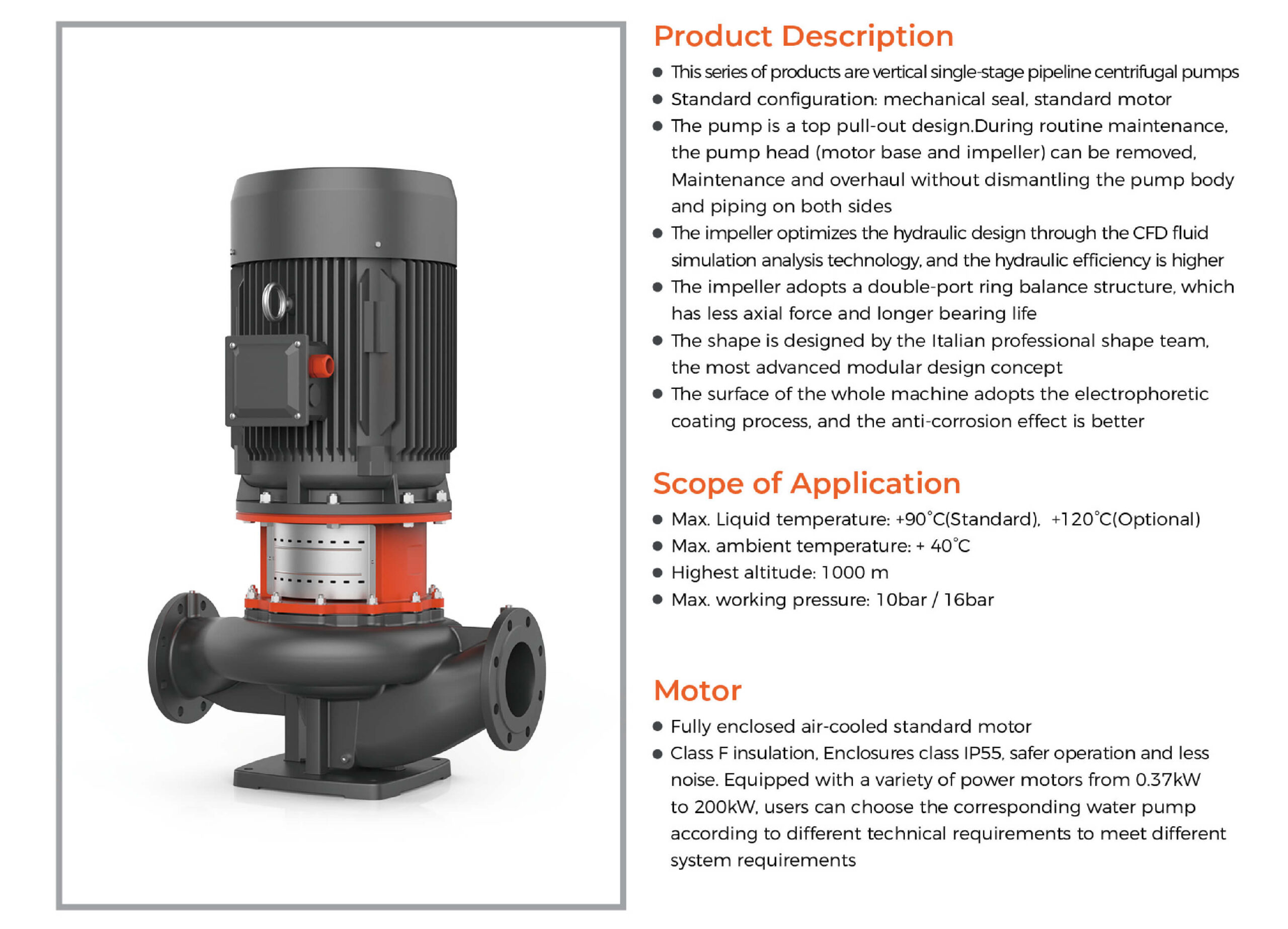 • Vertical single-stage pipeline centrifugal pump for versatile applications