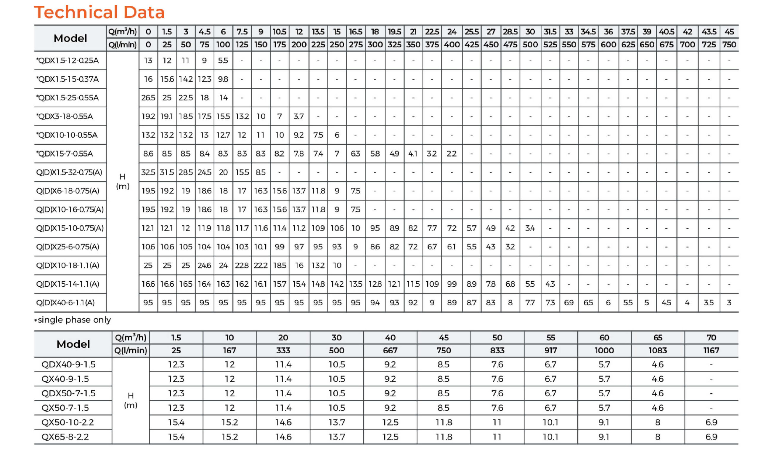- Max head: 125 m